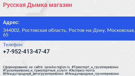 Русская Дымка, магазин по адресу 344002, Ростовская область, Ростов-на-Дону, Московская, 65 в дальнейшем Организация, размещена в следующих категориях: