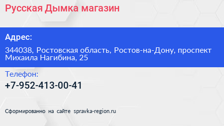 Русская Дымка, магазин по адресу 344038, Ростовская область, Ростов-на-Дону, проспект Михаила Нагибина, 25 в дальнейшем Организация, размещена в следующих категориях:
