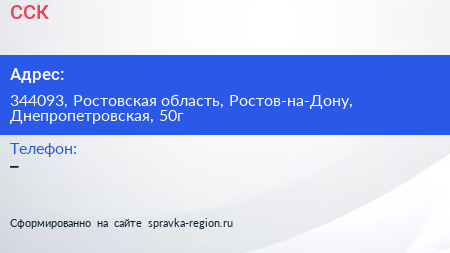 ССК по адресу 344093, Ростовская область, Ростов-на-Дону, Днепропетровская, 50г в дальнейшем Организация, размещена в следующих категориях:
