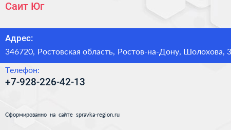 Саит-Юг по адресу 346720, Ростовская область, Ростов-на-Дону, Шолохова, 3 в дальнейшем Организация, размещена в следующих категориях: