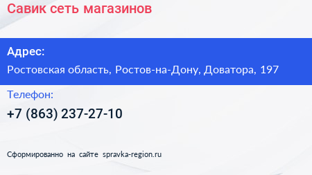 Савик, сеть магазинов по адресу Ростовская область, Ростов-на-Дону, Доватора, 197 в дальнейшем Организация, размещена в следующих категориях: