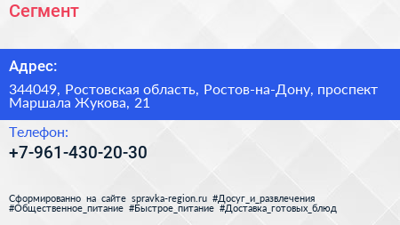 Сегмент по адресу 344049, Ростовская область, Ростов-на-Дону, проспект Маршала Жукова, 21 в дальнейшем Организация, размещена в следующих категориях: