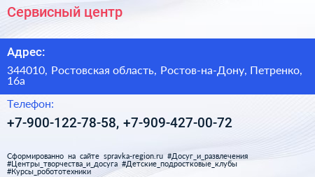 Сервисный центр по адресу 344010, Ростовская область, Ростов-на-Дону, Петренко, 16а в дальнейшем Организация, размещена в следующих категориях: