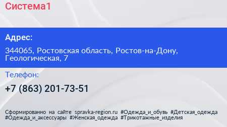 Система1 по адресу 344065, Ростовская область, Ростов-на-Дону, Геологическая, 7 в дальнейшем Организация, размещена в следующих категориях: