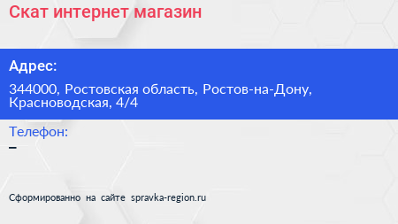 Скат, интернет-магазин по адресу 344000, Ростовская область, Ростов-на-Дону, Красноводская, 4/4 в дальнейшем Организация, размещена в следующих категориях: