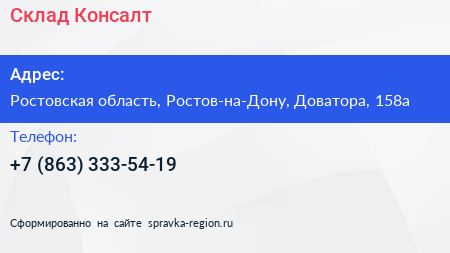 Склад Консалт по адресу Ростовская область, Ростов-на-Дону, Доватора, 158а в дальнейшем Организация, размещена в следующих категориях: