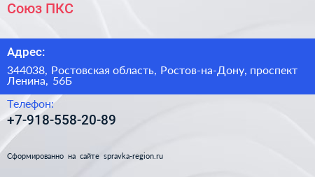 Союз ПКС по адресу 344038, Ростовская область, Ростов-на-Дону, проспект Ленина, 56Б в дальнейшем Организация, размещена в следующих категориях: