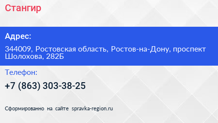 Стангир по адресу 344009, Ростовская область, Ростов-на-Дону, проспект Шолохова, 282Б в дальнейшем Организация, размещена в следующих категориях: