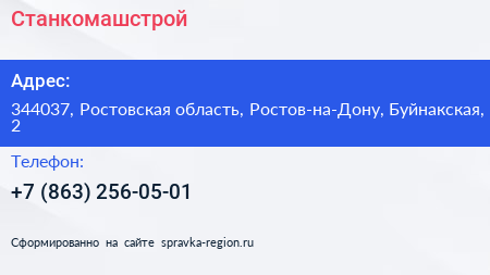 Станкомашстрой по адресу 344037, Ростовская область, Ростов-на-Дону, Буйнакская, 2 в дальнейшем Организация, размещена в следующих категориях: