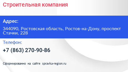 Строительная компания по адресу 344090, Ростовская область, Ростов-на-Дону, проспект Стачки, 228 в дальнейшем Организация, размещена в следующих категориях: