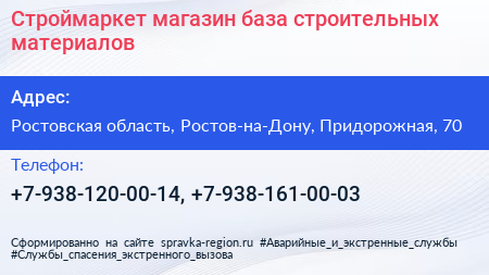 Строймаркет, магазин-база строительных материалов по адресу Ростовская область, Ростов-на-Дону, Придорожная, 70 в дальнейшем Организация, размещена в следующих категориях: