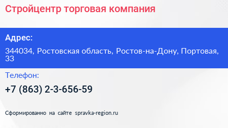 Стройцентр, торговая компания по адресу 344034, Ростовская область, Ростов-на-Дону, Портовая, 33 в дальнейшем Организация, размещена в следующих категориях: