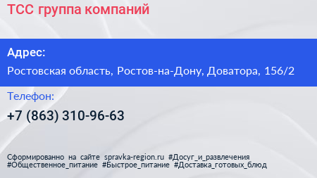 ТСС, группа компаний по адресу Ростовская область, Ростов-на-Дону, Доватора, 156/2 в дальнейшем Организация, размещена в следующих категориях: