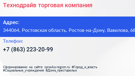Технодрайв, торговая компания по адресу 344064, Ростовская область, Ростов-на-Дону, Вавилова, 68 в дальнейшем Организация, размещена в следующих категориях: