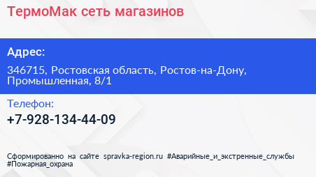ТермоМак, сеть магазинов по адресу 346715, Ростовская область, Ростов-на-Дону, Промышленная, 8/1 в дальнейшем Организация, размещена в следующих категориях: