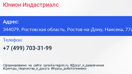 Юнион Индастриалс по адресу 344079, Ростовская область, Ростов-на-Дону, Нансена, 77а в дальнейшем Организация, размещена в следующих категориях: