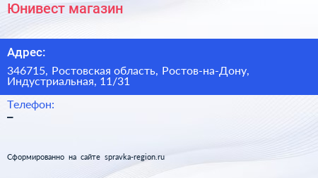 Юнивест, магазин по адресу 346715, Ростовская область, Ростов-на-Дону, Индустриальная, 11/31 в дальнейшем Организация, размещена в следующих категориях: