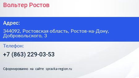 Вольтер-Ростов по адресу 344092, Ростовская область, Ростов-на-Дону, Добровольского, 3 в дальнейшем Организация, размещена в следующих категориях: