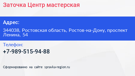 Заточка-Центр, мастерская по адресу 344038, Ростовская область, Ростов-на-Дону, проспект Ленина, 54 в дальнейшем Организация, размещена в следующих категориях: