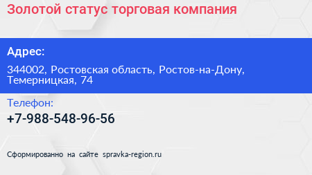 Золотой статус, торговая компания по адресу 344002, Ростовская область, Ростов-на-Дону, Темерницкая, 74 в дальнейшем Организация, размещена в следующих категориях: