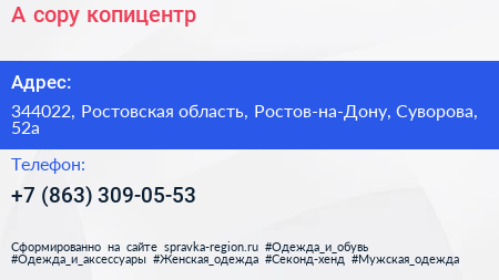 Для связи с организацией воспользуйтесь номером телефона: +7 (863) 309-05-53. Пн: c 10:00-18:00, Вт: c 10:00-18:00, Ср: c 10:00-18:00, Чт: c 10:00-18:00, Пт: c 10:00-18:00, Сб: выходной, Вс: выходной, вы можете обратиться в эту организацию.