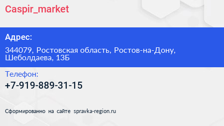 Caspir_market по адресу 344079, Ростовская область, Ростов-на-Дону, Шеболдаева, 13Б в дальнейшем Организация, размещена в следующих категориях: