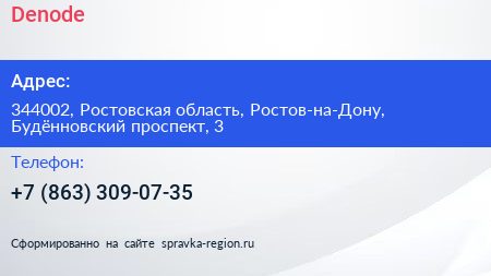 Denode по адресу 344002, Ростовская область, Ростов-на-Дону, Будённовский проспект, 3 в дальнейшем Организация, размещена в следующих категориях: