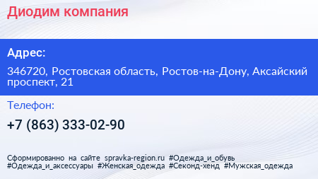 Диодим, компания по адресу 346720, Ростовская область, Ростов-на-Дону, Аксайский проспект, 21 в дальнейшем Организация, размещена в следующих категориях: