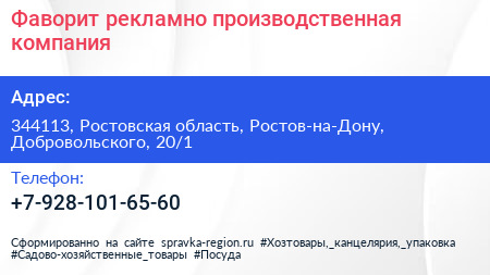 Фаворит, рекламно-производственная компания по адресу 344113, Ростовская область, Ростов-на-Дону, Добровольского, 20/1 в дальнейшем Организация, размещена в следующих категориях: