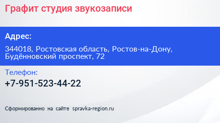 Графит, студия звукозаписи по адресу 344018, Ростовская область, Ростов-на-Дону, Будённовский проспект, 72 в дальнейшем Организация, размещена в следующих категориях: