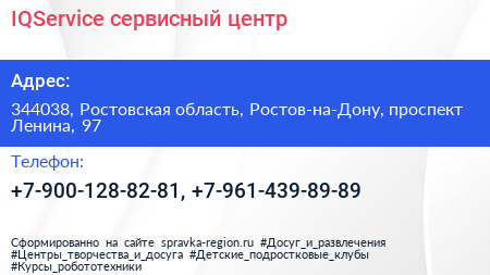 IQService, сервисный центр по адресу 344038, Ростовская область, Ростов-на-Дону, проспект Ленина, 97 в дальнейшем Организация, размещена в следующих категориях: