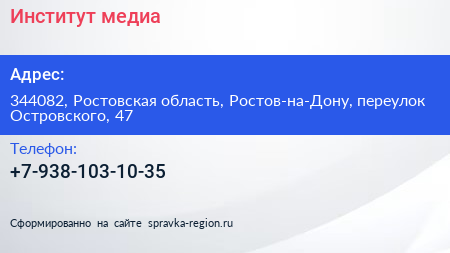Институт.медиа по адресу 344082, Ростовская область, Ростов-на-Дону, переулок Островского, 47 в дальнейшем Организация, размещена в следующих категориях: