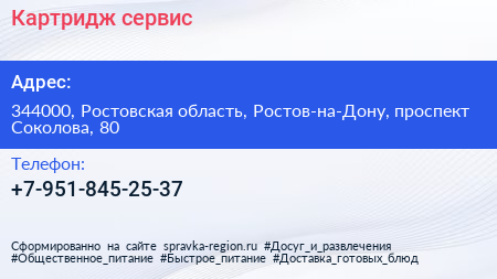 Картридж-сервис по адресу 344000, Ростовская область, Ростов-на-Дону, проспект Соколова, 80 в дальнейшем Организация, размещена в следующих категориях: