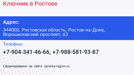 Ключник в Ростове по адресу 344002, Ростовская область, Ростов-на-Дону, Ворошиловский проспект, 63 в дальнейшем Организация, размещена в следующих категориях:
