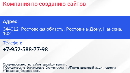 Компания по созданию сайтов по адресу 344012, Ростовская область, Ростов-на-Дону, Нансена, 102 в дальнейшем Организация, размещена в следующих категориях: