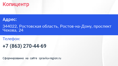 Копицентр по адресу 344022, Ростовская область, Ростов-на-Дону, проспект Чехова, 24 в дальнейшем Организация, размещена в следующих категориях: