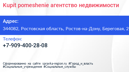 Kupit-pomeshenie, агентство недвижимости по адресу 344082, Ростовская область, Ростов-на-Дону, Береговая, 2 в дальнейшем Организация, размещена в следующих категориях: