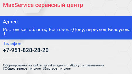 MaxService, сервисный центр по адресу Ростовская область, Ростов-на-Дону, переулок Белоусова, 1 в дальнейшем Организация, размещена в следующих категориях: