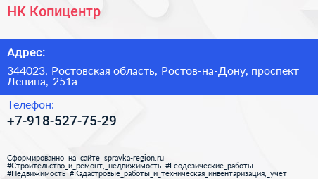 НК Копицентр по адресу 344023, Ростовская область, Ростов-на-Дону, проспект Ленина, 251а в дальнейшем Организация, размещена в следующих категориях: