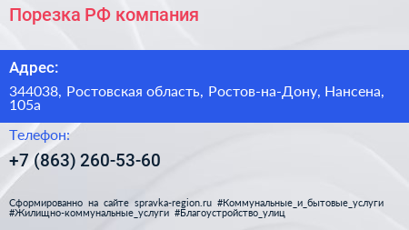 Порезка.РФ, компания по адресу 344038, Ростовская область, Ростов-на-Дону, Нансена, 105а в дальнейшем Организация, размещена в следующих категориях: