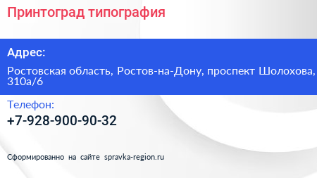 Принтоград, типография по адресу Ростовская область, Ростов-на-Дону, проспект Шолохова, 310а/6 в дальнейшем Организация, размещена в следующих категориях: