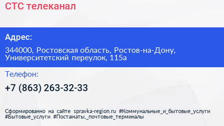 СТС, телеканал по адресу 344000, Ростовская область, Ростов-на-Дону, Университетский переулок, 115а в дальнейшем Организация, размещена в следующих категориях: