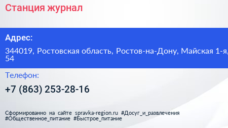 Станция, журнал по адресу 344019, Ростовская область, Ростов-на-Дону, Майская 1-я, 54 в дальнейшем Организация, размещена в следующих категориях: