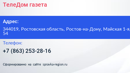 ТелеДом, газета по адресу 344019, Ростовская область, Ростов-на-Дону, Майская 1-я, 54 в дальнейшем Организация, размещена в следующих категориях: