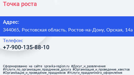 Точка роста по адресу 344065, Ростовская область, Ростов-на-Дону, Орская, 14а в дальнейшем Организация, размещена в следующих категориях: