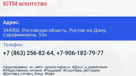 ЮТМ, агентство по адресу 344002, Ростовская область, Ростов-на-Дону, Серафимовича, 53а в дальнейшем Организация, размещена в следующих категориях: