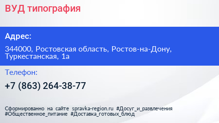 ВУД, типография по адресу 344000, Ростовская область, Ростов-на-Дону, Туркестанская, 1а в дальнейшем Организация, размещена в следующих категориях: