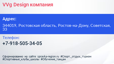 VVg-Design, компания по адресу 344019, Ростовская область, Ростов-на-Дону, Советская, 33 в дальнейшем Организация, размещена в следующих категориях: