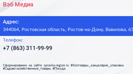 Вэб-Медиа по адресу 344064, Ростовская область, Ростов-на-Дону, Вавилова, 63 в дальнейшем Организация, размещена в следующих категориях: