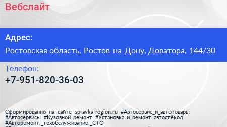 Вебслайт по адресу Ростовская область, Ростов-на-Дону, Доватора, 144/30 в дальнейшем Организация, размещена в следующих категориях: